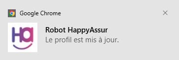 . Lorsque vous validerez cette page, certaines données seront envoyées sur votre compte HappyAssur pour actualiser le profils correspondant que vous avez au préalable créé dans votre Espace. Nous ne collectons que les données indispensables à la connexion de nos services, pour vous, aux sites que le plugin surveille. Une fois cette transmission effectuée, un message vous en informe.